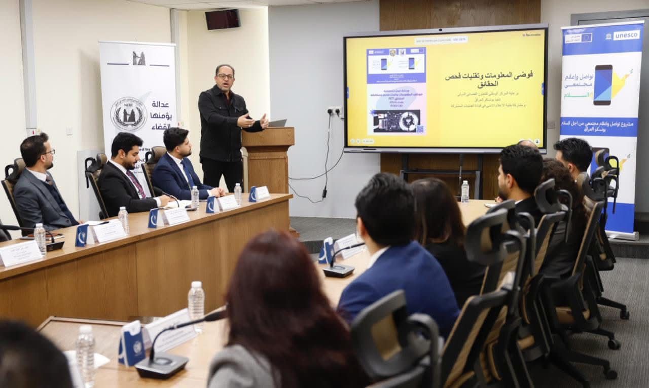 واشار المركز الى ان ركزت الورشة التي نظمت بالتعاون مع منظمة الأمم المتحدة (اليونسكو) وبالتنسيق مع خلية الإعلام الأمني وحضرها موظفو المركز الوطني للتعاون القضائي الدولي، على مكافحة فوضى المعلومات واضطرابها عبر اعتماد آليات فحص الحقائق ومطابقة المعلومات، بما يسهم في تعزيز القدرة على رصد المحتوى المضلل والتعامل معه بفعالية، ودعم بناء مهني مشترك لآليات التعامل مع المعلومات في السياقات القضائية.