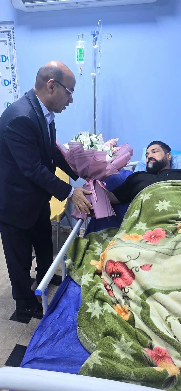 وبدوره بعث اللامي بباقة ورد للزميل رياض العگيلي قدمها نيابة عنه رئيس فرع نقابة الصحفيين في واسط السيد ماجد حميد العتابي خلال زيارة تفقدية له في ردهة المستشفى وبرفقة عددٍ من الزملاء الصحفيين في واسط بينهم مدير عام وكالتنا الزميل رحيم زاير العتابي،داعين الله جل وعلا أن يتلطف عليه بتمام الصحة والسلامة.