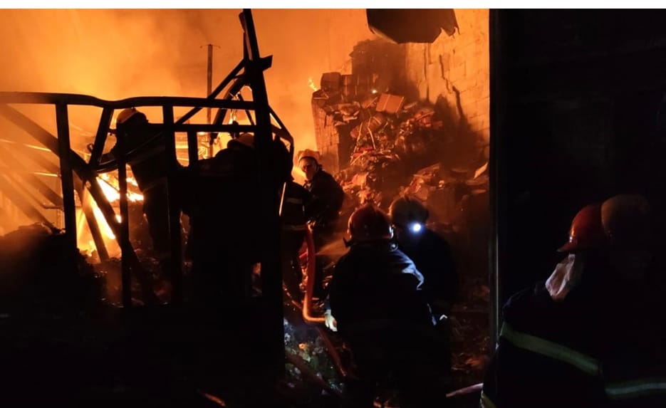 إخماد حريق أندلع في أحد مخازن منطقة جميلة ببغداد(صور)