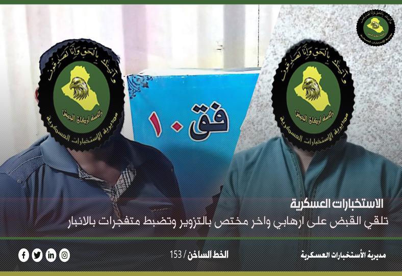 الاستخبارات العسكرية تلقي القبض على ارهابي واخر مختص بالتزوير وتضبط متفجرات بالانبار