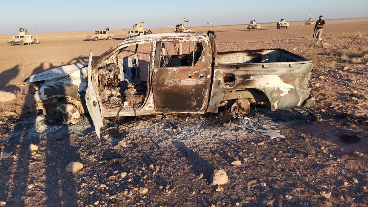 الاستخبارات العسكرية وقوة برية تدمر عجلة لداعش الارهابي في صحراء الرطبة بالانبار