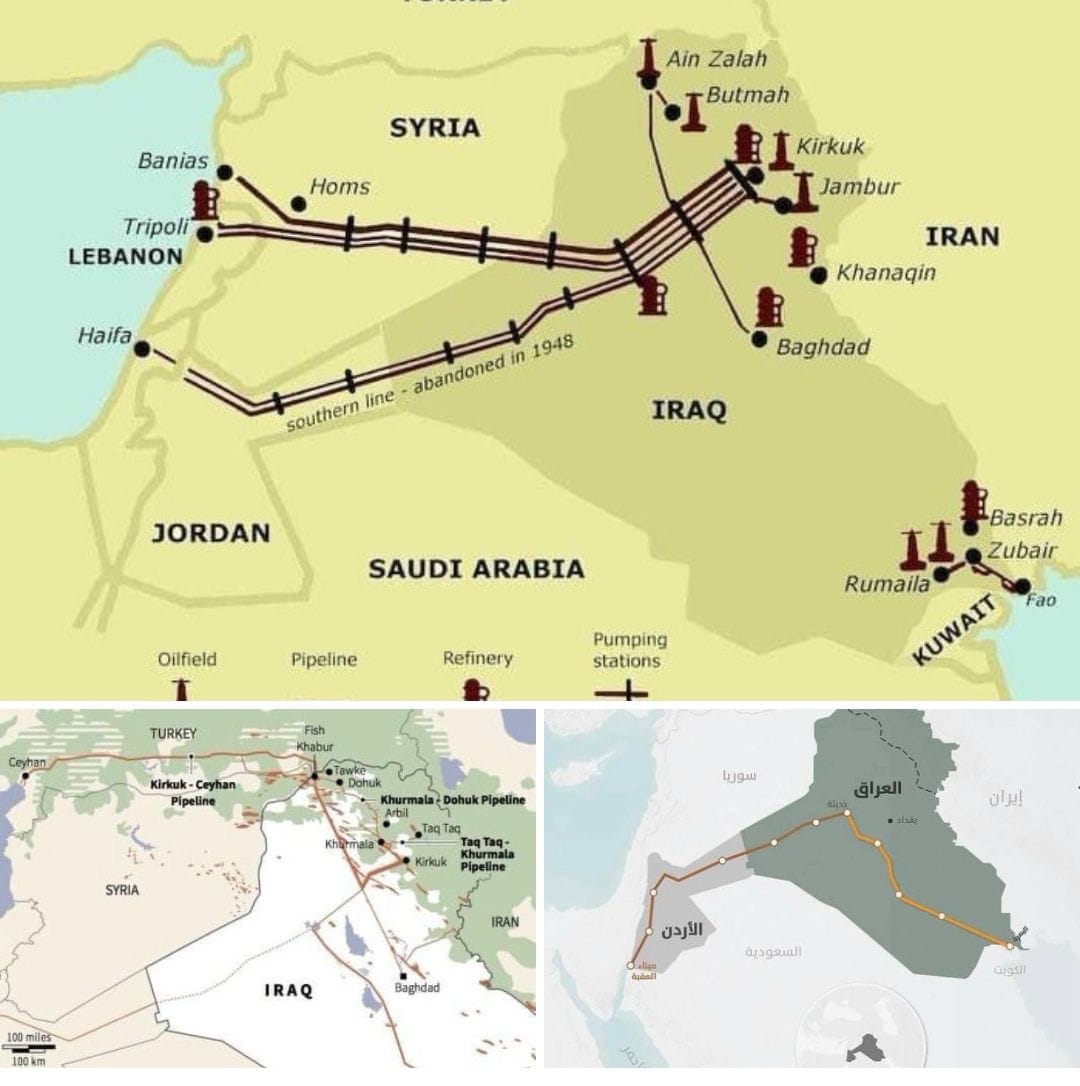 العراق يمتلك ما يقارب 10 انابيب نفطية تمر في أراضي الدول المجاورة مع مستودعات و موانئ تصدير و محطات ضخ و مصافي صغيرة ؟؟؟