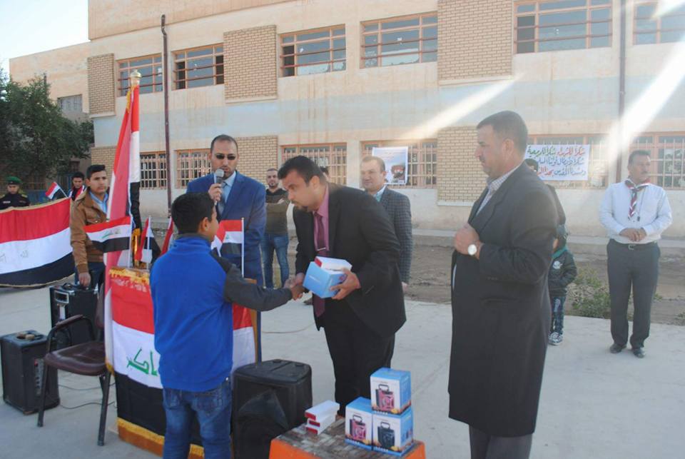 نظم البيت الثقافي في واسط احتفالية بهيجة بمناسبة يوم النصر الكبير في متوسطة الجهاد للبنين وبالتعاون مع المديرية العامة لتربية واسط .