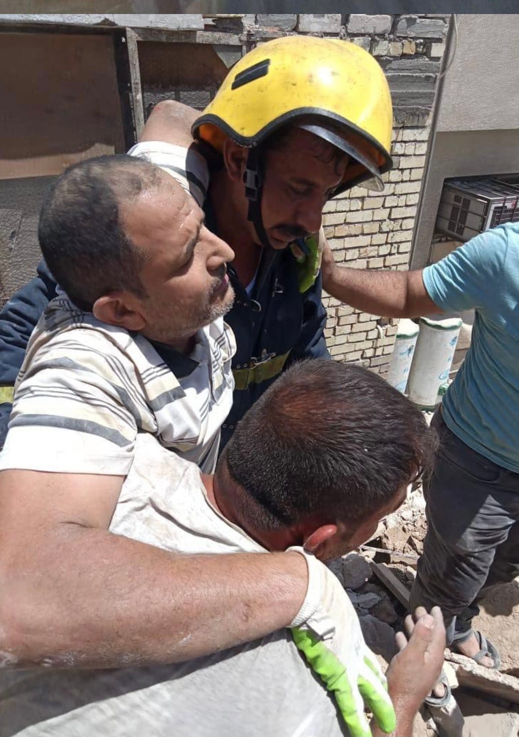 الدفاع المدني ينقذ عاملين علقا تحت ركام منزل إنهار فوقهما ببغداد(صور)