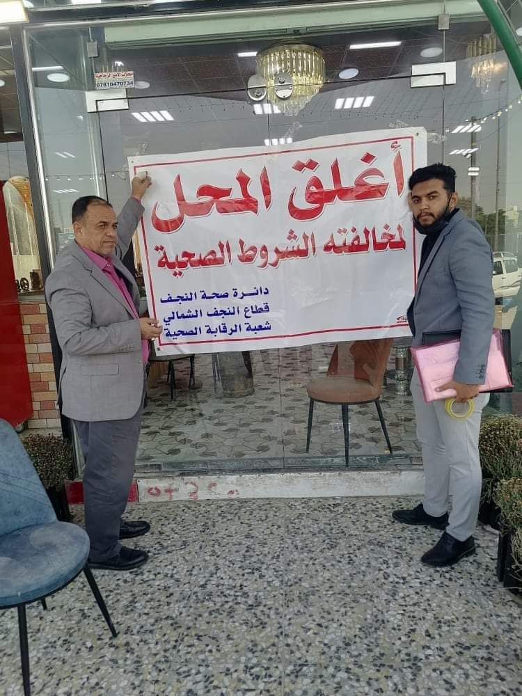 فرق الرقابة الصحية التابعه لقطاع النجف الشمالي وحسب توجيهات مدير القطاع الدكتور أحمد التميمي تواصل حملاتها الصحيه وبالتعاون مع الأمن الوطني على المحلات العامه الخاضعة الرقابة الصحية على الاسواق والمطاعم الشعبية في حي السلام وحي المكرمه اليوم الاحد المصادف 21/11/2021 وتضمنت الحمله ما يلي: