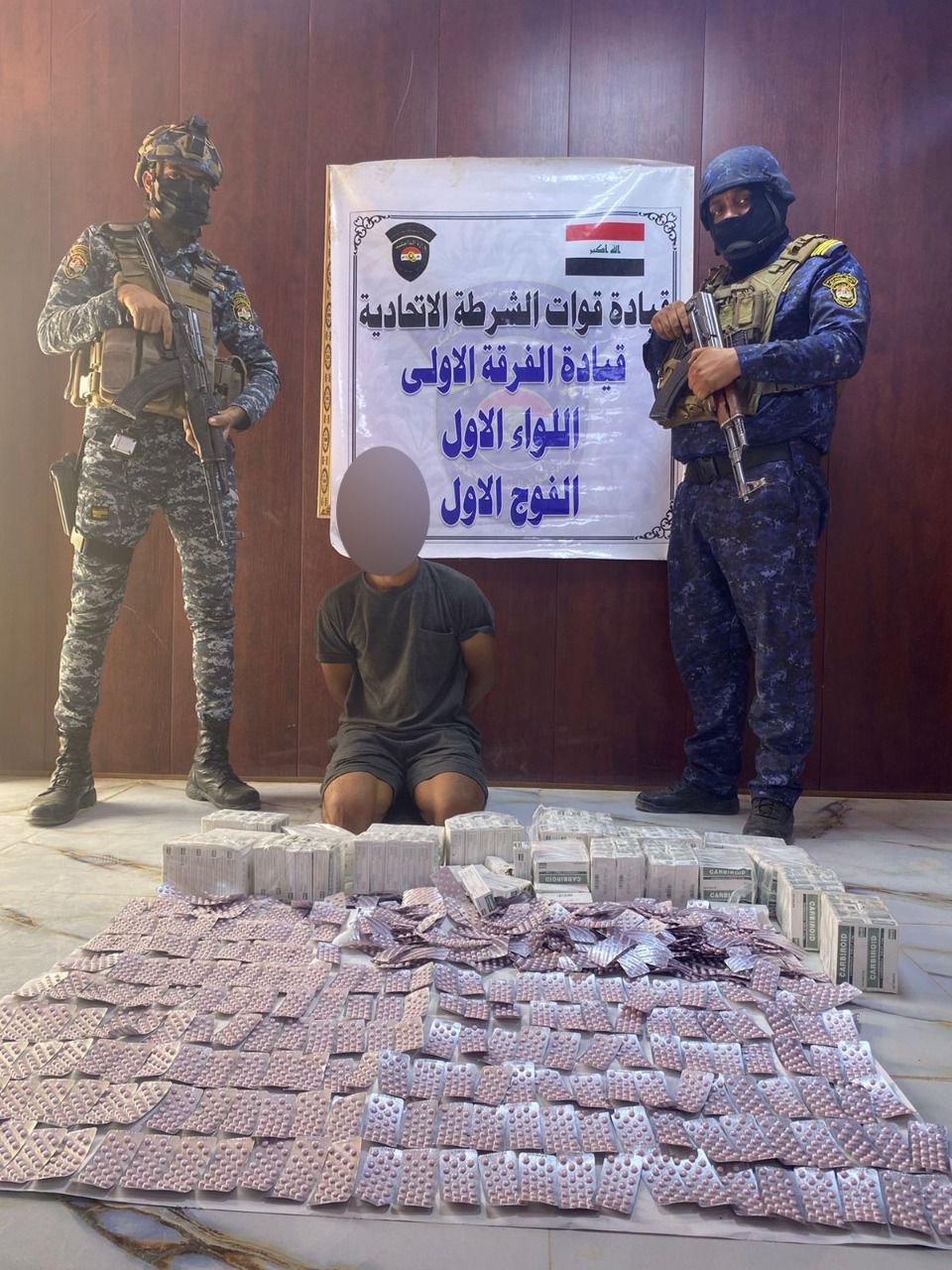 تمكنت قوة من الفوج الأول اللواء الأول شرطة اتحادية واثناء تنفيذ واجب التفتيش ضمن سيطرة الجسر الفرنسي في منطقة “النهروان” ببغداد من ضبط عجلة كيا تحمل ادوية منتهية الصلاحية عبارة عن (1967) شريط حبوب مخفية تحت مواد مستهلكة ونفايات