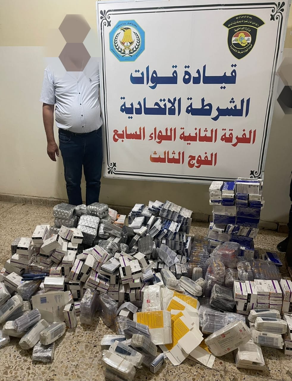 كما تمكنت قوة مشتركة من اللواء السابع الفرقة الثانية شرطة اتحادية ومفرزة من جهاز الأمن الوطني ونجدة بغداد وبعد توفر معلومات من احد المتعاونين من إلقاء القبض على متهمين اثنين يستقلان عجلة في داخلها كمية كبيرة من الأدوية “المهربة” يتعاملان بها بشكل غير رسمي في إحدى مناطق الكرخ .