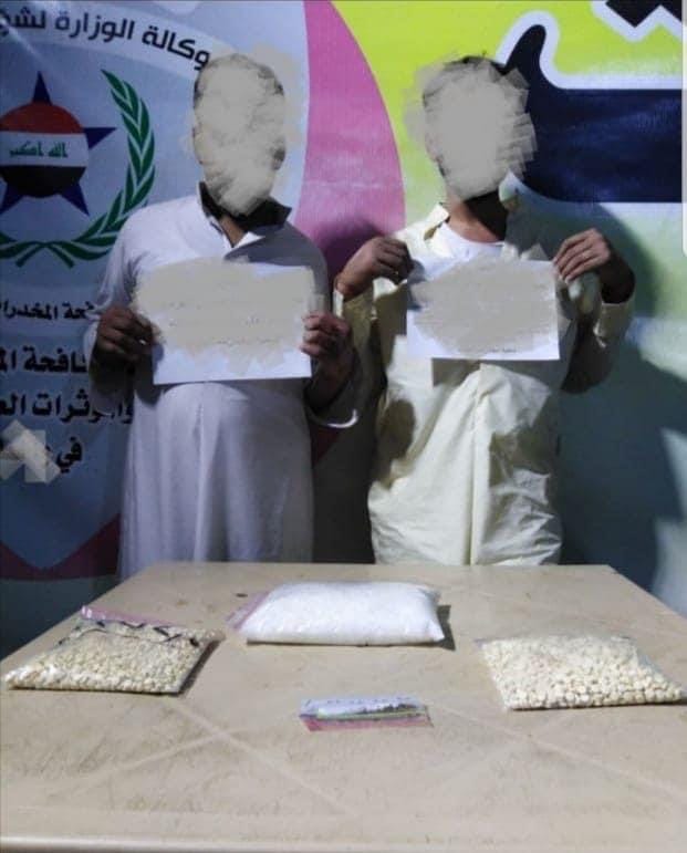 ألقت المديرية العامة لمكافحة المخدرات والمؤثرات العقلية -قسم مكافحة مخدرات – واسط القبض على ( 2 ) متهم بتجارة المواد المخدرة وضبطهم بالجرم المشهود وبحوزتهم مايقارب الكيلو غرام من مادة الكريستال المخدرة و(3830) حبة مخدرة نوع كبتاجون.
