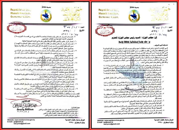 واضاف المياحي،، تماشياً مع توجه الحكومة في حل مشاكل المحافظات ودعمها من خلال عقد جلسات متتالية لمجلس الوزراء في عدد من المحافظات ..