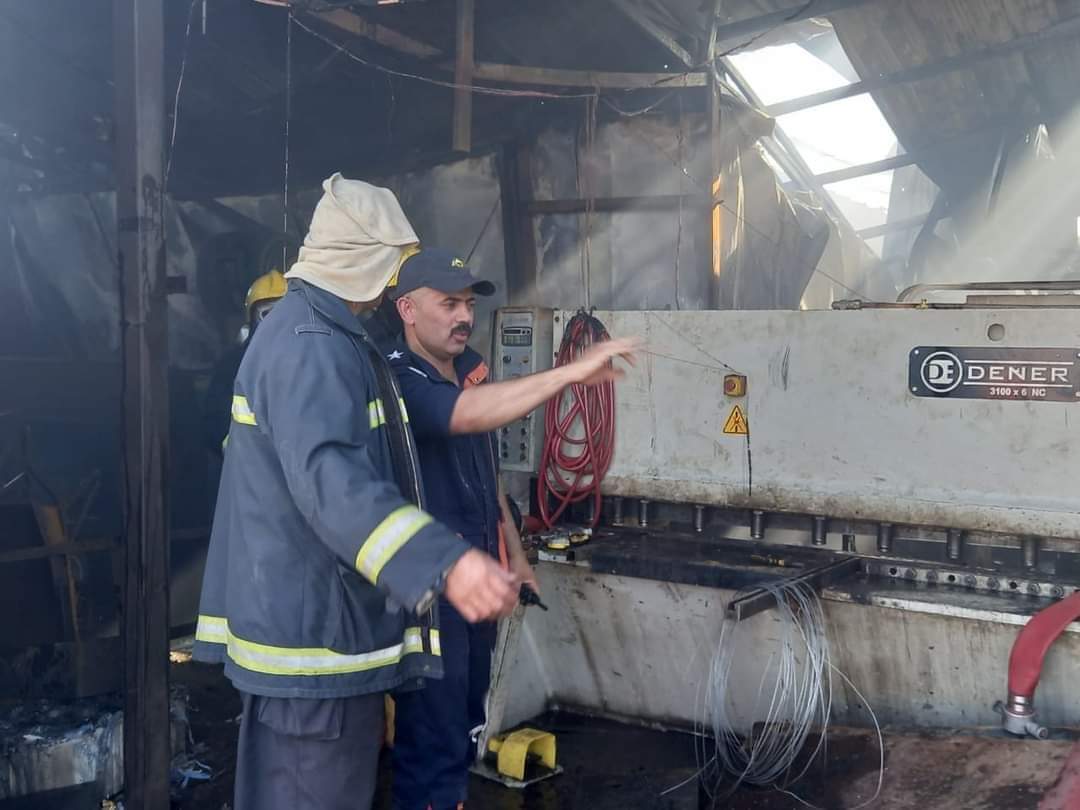 سيطرت فرق الدفاع المدني على حادث حريق اندلع داخل معمل للأعمال الحديدية ومكائن التخريم ” CNC ” بمساحة 300 متر مشيد من ألواح الچبنكو يحتوي على كميات كبيرة من أسطوانات الأكسجين للاستخدام الصناعي في منطقة باب المعظم وسط بغداد .