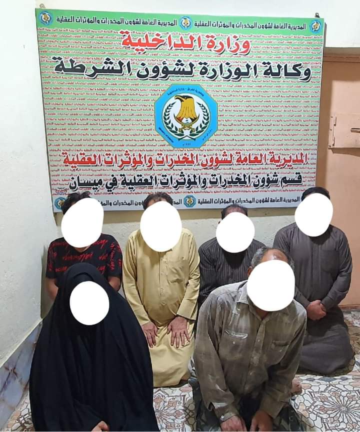 أعلنت مديرية شرطة محافظة ميسان ، اليوم الخميس 25 تشرين الثاني ، 2021) عن إلقاء القبض على 6 متهمين ، بينهم امرأة ، بتهمة الاتجار بالمواد المخدرة .