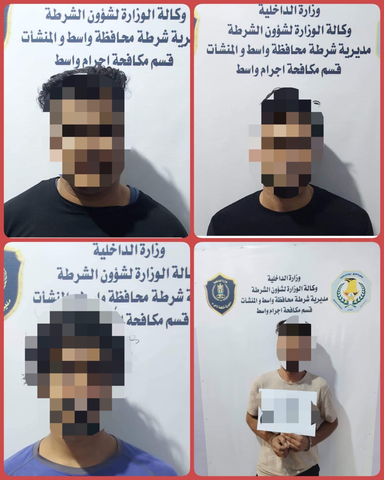 والجدير بالذكر ان قسم مكافحة الإجرام في قيادة شرطة واسط استطاع في وقت سابق من إعتقال المطلوبين أعلاه وبكمين محكم، وبعد تدقيق معلومات المطلوبين وأوراقهم الثبوتية تمت أحالتهم للقضاء العراقي.