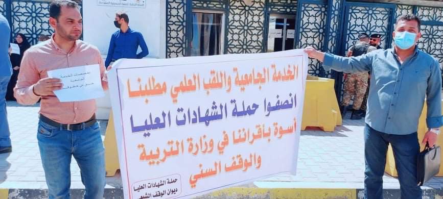 نظم الكادر المتقدم من اعضاء الهيئة التدريسية من حملة الشهادات العليا في ديوان الوقف الشيعي دائرة التعليم الديني والدراسات الإسلامية بفرعيها العام والإسلامي وقفة احتجاجية للمطالبة بحسم موضوع اللقب العلمي وقانون الخدمة الجامعية اسوة بزملائهم في ديوان الوقف السني ووزارة التربية لتوفر النصوص القانونية والدستورية التي منحت لهم هذا الحق منذ عام ٢٠١٢. ونتيجة