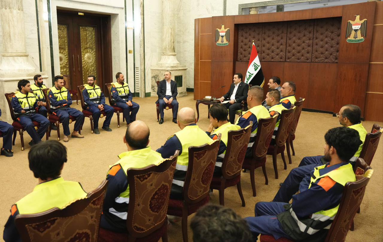 رئيس الوزراء محمد شياع السوداني يستضيف عدداً من عمّال النظافة على مائدة الافطار