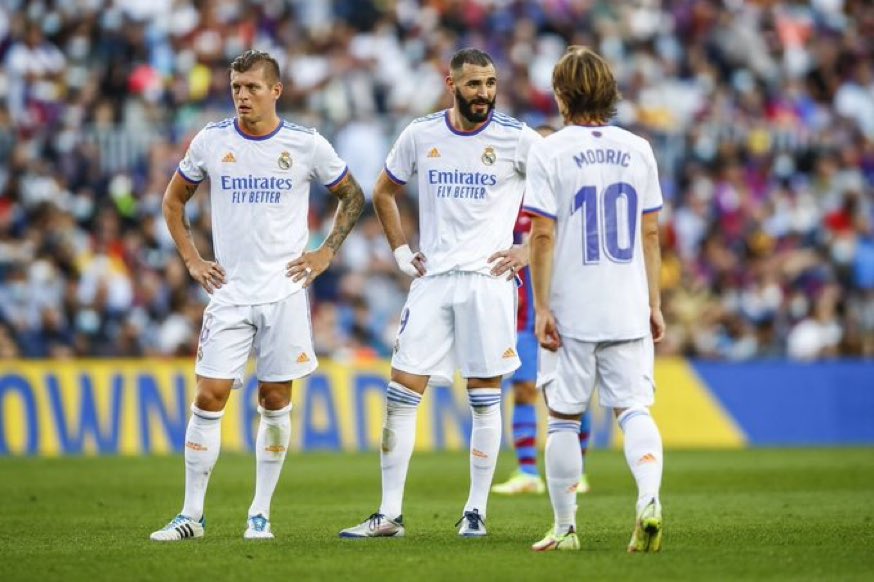 الواقع يقول أن الريال مهدد بعد أشهر قليلة من الآن بفقدان ما تبقى من أساطيره! والحديث تحديدًا عن الثلاثي كريم بنزيما، لوكا مودريتش، توني كروس، فعقودهم ستنتهي في الصيف القادم أي عقب نهاية الموسم الحالي مباشرة، والتجديد لهم لم يُطرح حتى الآن بشكل علني دون أن يعلم أحد ما يدور خلف الكواليس.