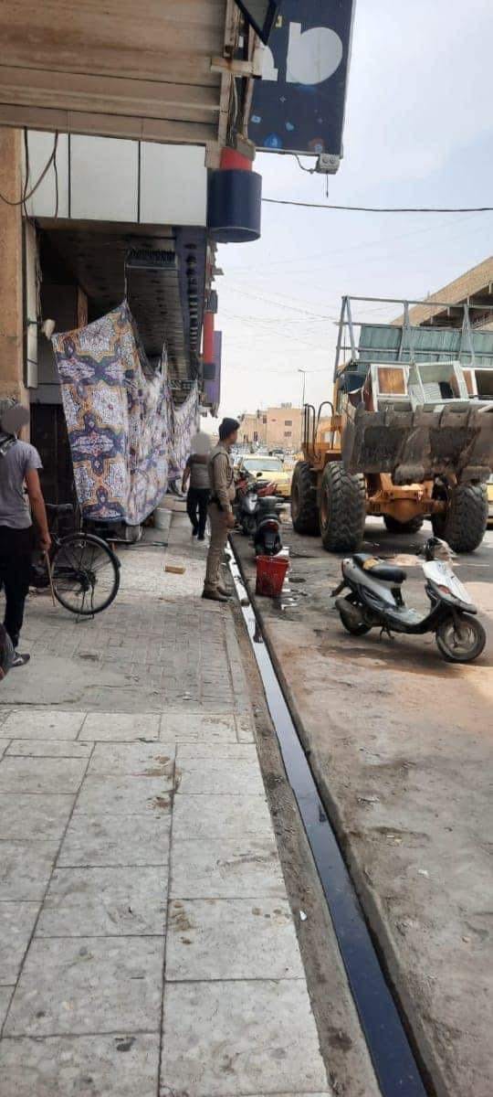 شرطة المثنى تنفذ حمله لرفع التجاوزات على الأرصفة من قبل أصحاب المحال التجارية