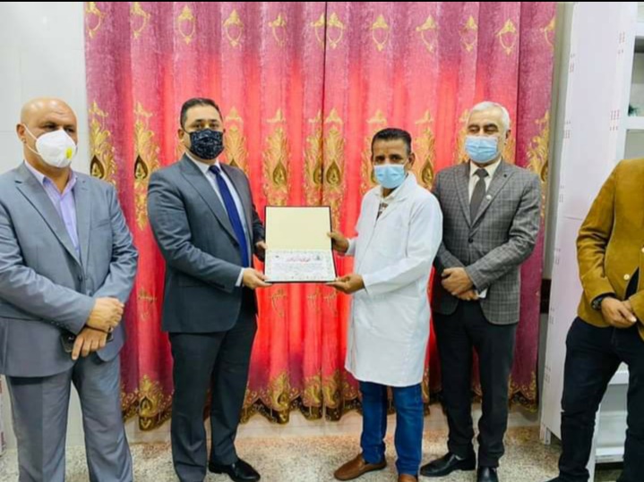 افاد المصدر.. كرم مدير عام صحة ميسان الدكتور علي محمود العلاق خلال زيارة إلى مركز صحي الأسكان أدارة وكوادر المركز لتحقيقهم أعلى نسبة تغطية في تلقيح المواطنين بلقاح كوفيد ١٩ وباقي اللقاحات