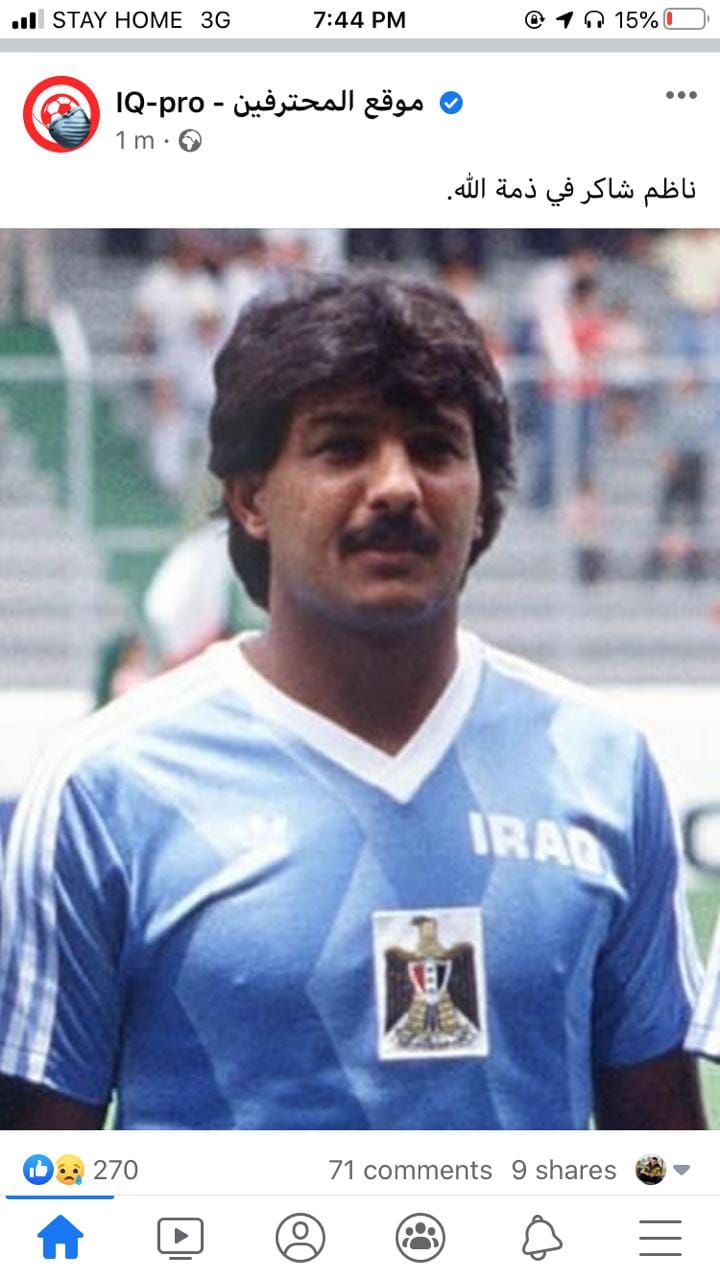عاجل.. وفاة اللاعب العراقي ناظم شاكر متاثرا باصابته بجائحة كورونا