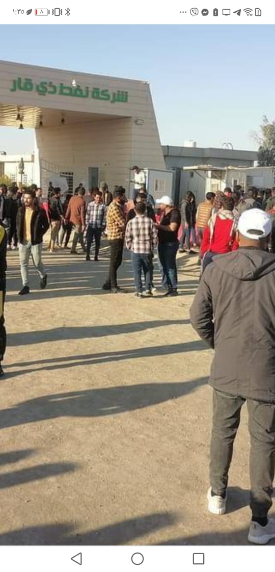 وذكر شهود عيان ان الخريجين لازالوا معتصمين أمام شركة نفط ذي قار منذ سبعة أشهر واستمرار غلق الشركة للمطالبة بالتعبين.