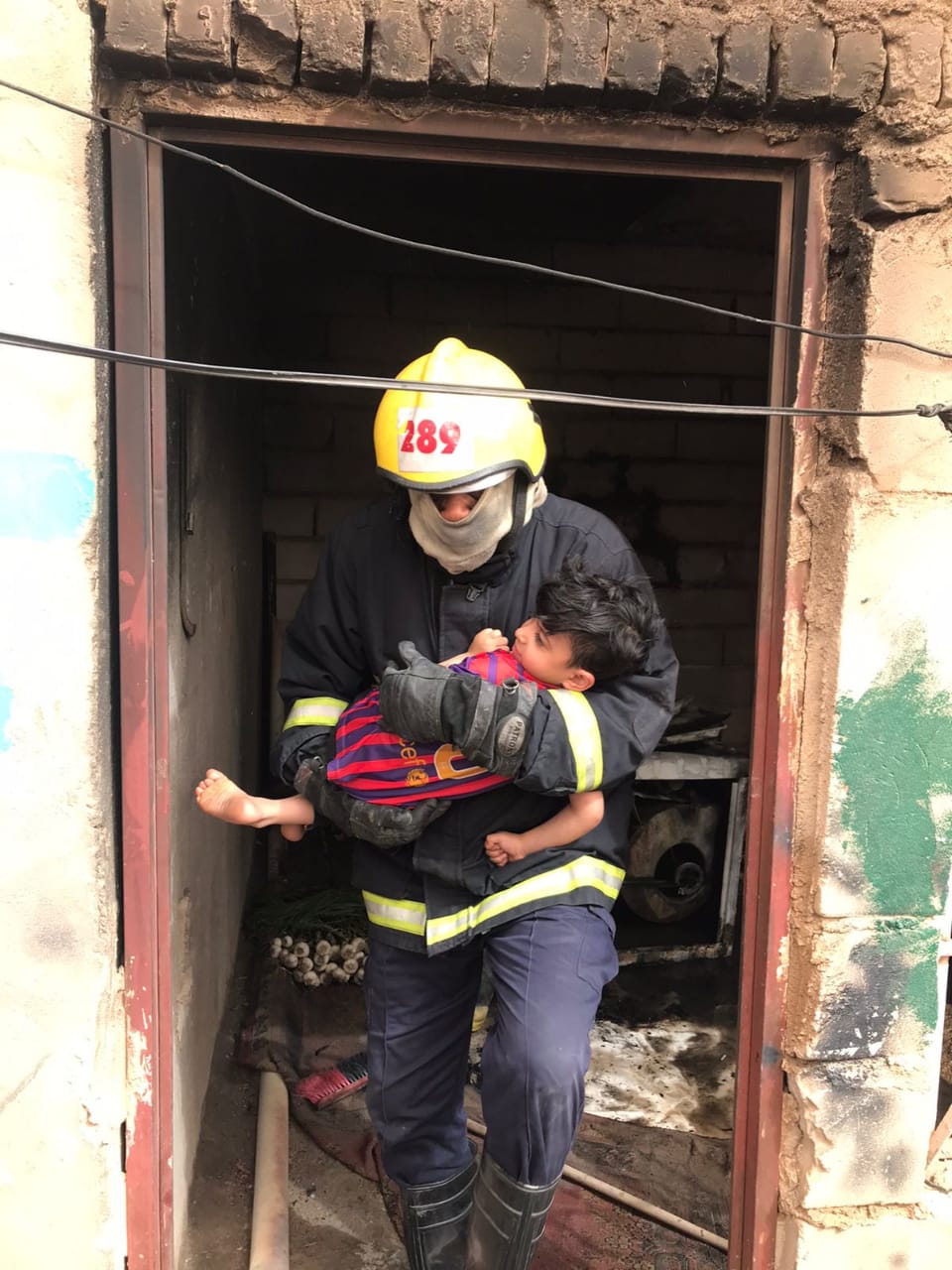 فرق الإطفاء في النجف تنقذ طفل بعد تعرض منزلهم للحرق