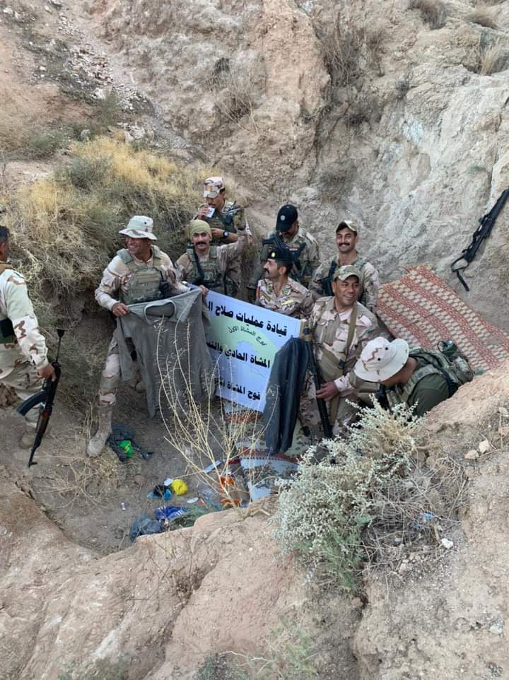 واكدت الخليه، وان ” وعلى اثر هذه المعلومات، نفذت قوة من لواء المشاة الواحد والتسعون ضمن قيادة عمليات صلاح الدين بواجب بحث و تفتيش حيث اسفرت العملية عن العثور على ٧ مخابئ وانفاق تحتوي في داخلها على ملابس قندهارية وحقائب عدد ٢ تحتوي على سجلات تعود لعصابات داعش الإرهابي و مجموعة قداحات وذاكرة خارجية (فلاش) وحزام ناسف، و ٧ رمانات يدوية،