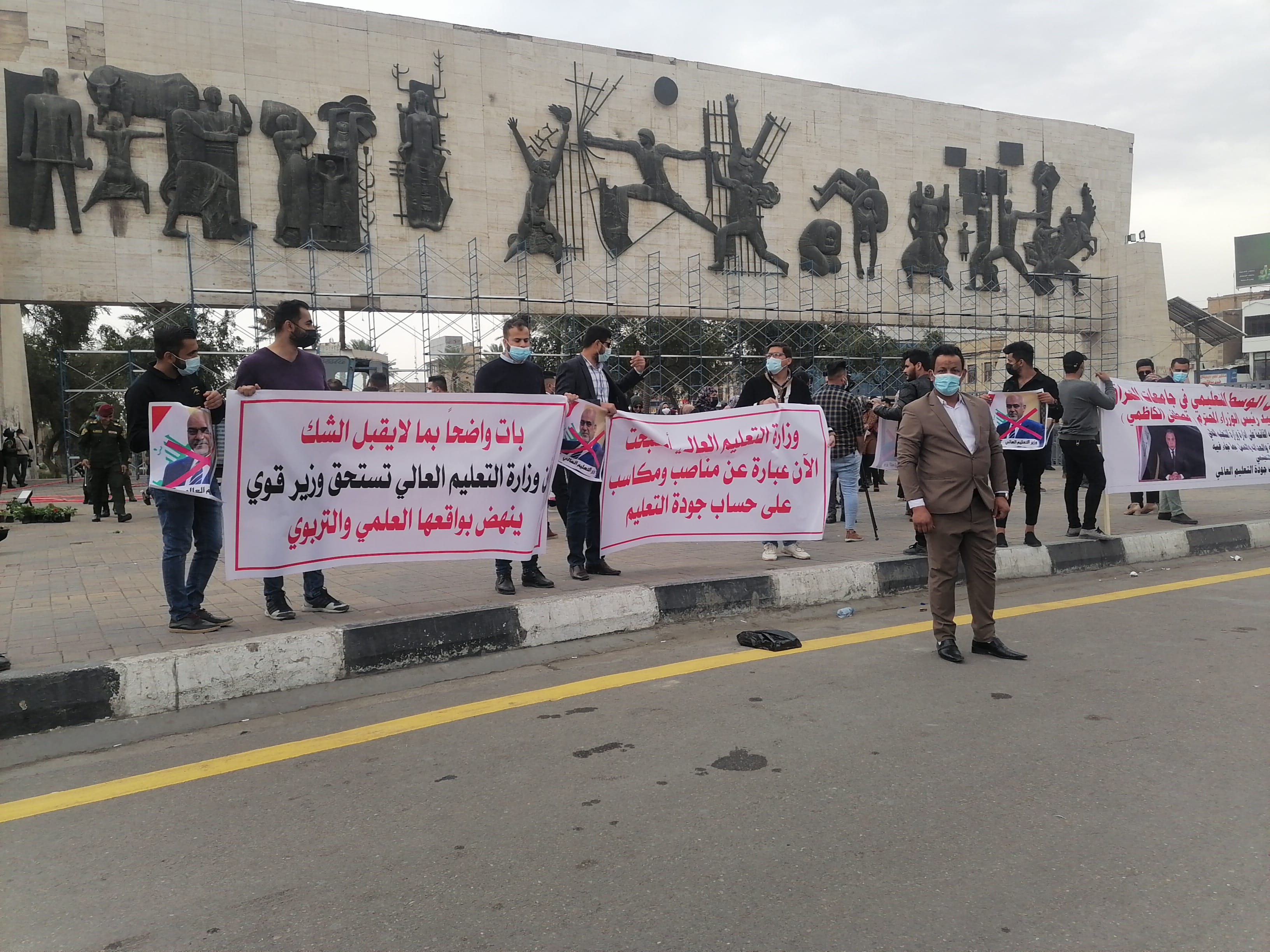 متظاهرون وسط ساحة التحرير يطالبون رئيس الوزراء العراقي بإعادة التعليم للتصنيف العالمي وتفعيل هيئة المساءلة والعدالة