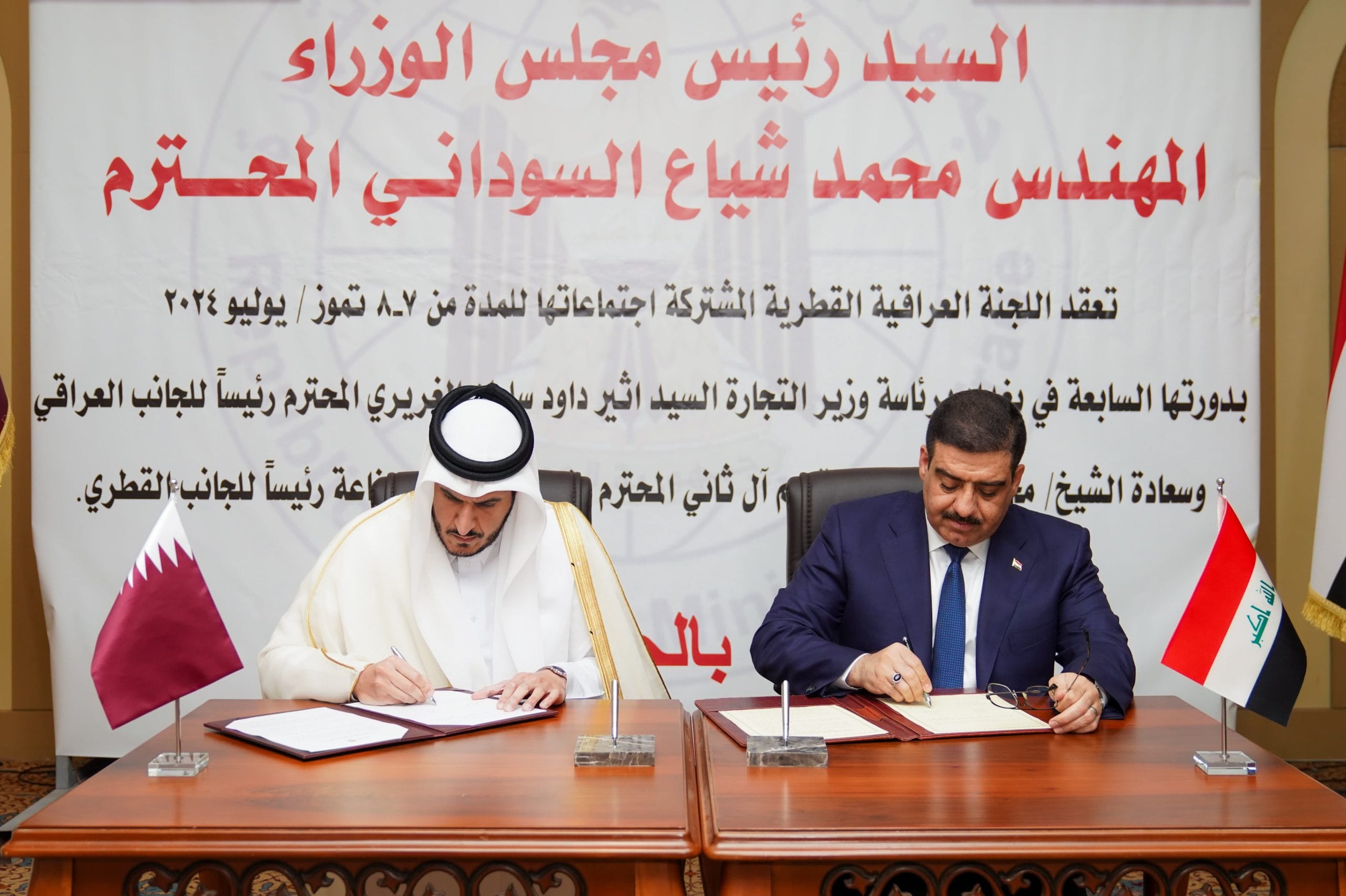 وقع السيد وزير التجارة اثير داود الغريري ووزير التجارة والصناعة القطري سعادة الشيخ محمد بن حمد آل ثاني المحضر الختامي للجنة العراقية القطرية بدورتها السابعة في العاصمة بغداد بعد مضي أكثر من ست سنوات على انعقاد الدورة السابقة .